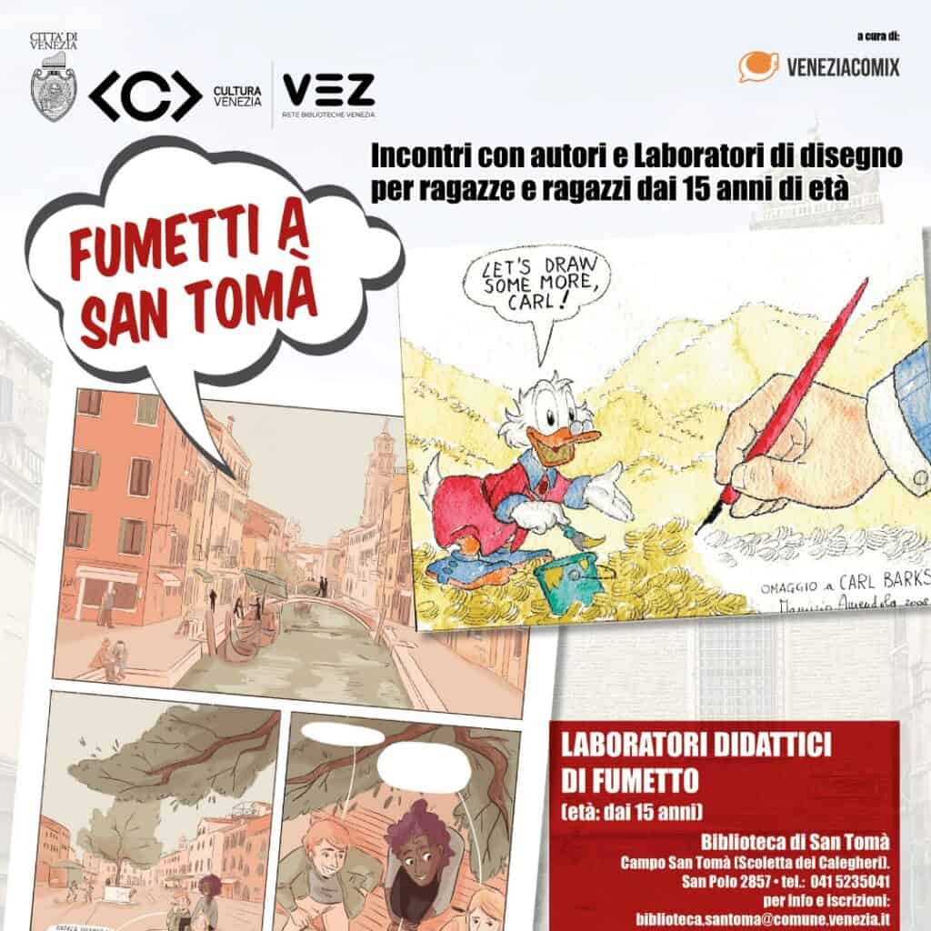 10 posti disponibili per ogni laboratorio – Iscrizione gratuita scrivendo a: biblioteca.santoma@comune.venezia.it indicando nell’oggetto “Iscrizione Laboratorio fumetto”, precisando nome e cognome, data di nascita e a quali laboratori si vuole partecipare.