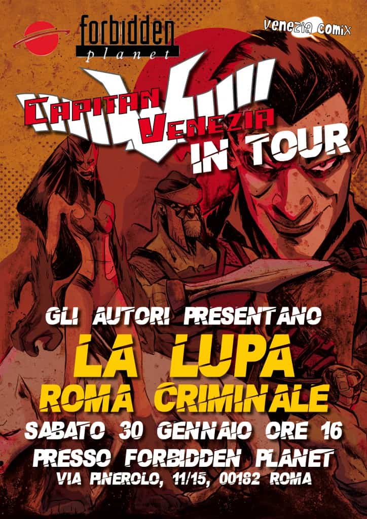 Entra in scena un nuovo personaggio nell’Universo dei Supereroi Italiani di Capitan Venezia ed entra in scena una nuova location: Roma. Nella città eterna, in cui Marco si trova in vacanza con Giorgio, corruzione, violenza e delinquenza imperversano. La Lupa combatterà contro i nemici R.O.M. e Il Gladiatore assieme a Capitan Venezia, ma altre oscure figura si muovono nell’ombra …