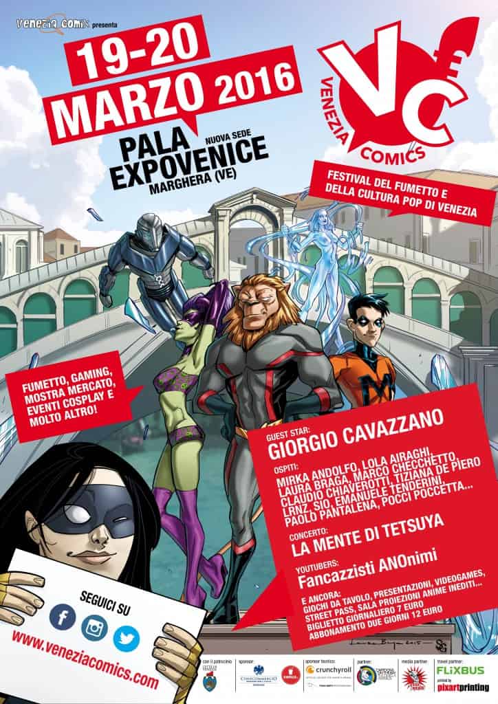 L’associazione culturale VeneziaComix in occasione del suo decimo anno di attività inaugurerà il prossimo 19 e 20 marzo 2016 presso il Pala ExpoVenice a Marghera il Venezia Comics – festival del fumetto e del cultura pop: l’ottava edizione del festival veneziano che fonderà il Mestre Comics e il Venice Comic Art Fest per rendere finalmente Venezia un punto di riferimento per tutti gli amanti dei fumetti.